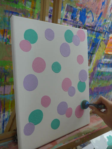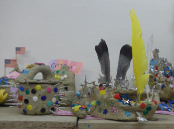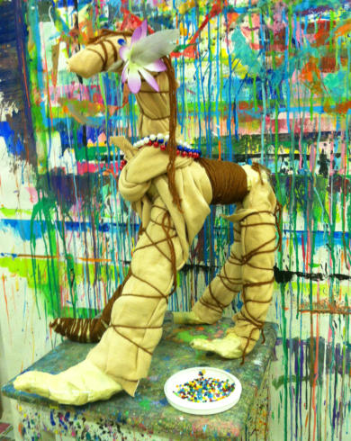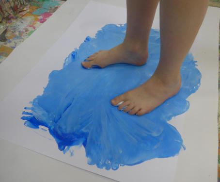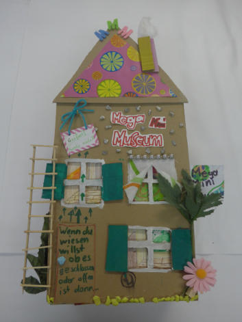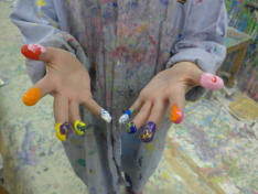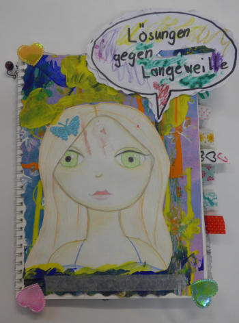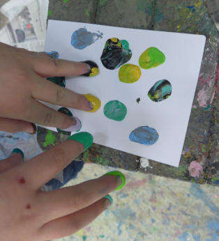 die kinder malen nicht nur, sie gestalten mit den vielen verschiednenen materialien, die sie im malatelier vorfinden diverse objekte. manchmal nehmen sie auch von zu hause eine leinwand mit, die sie bemalen, oder sie füllen bücher oder hefte oder binden sie gleich selbst zusammen. sie tonen und kleben und nähen sogar wenn nötig. manchmal nutzen sie auch finger, hände oder sogar die füsse um zu malen.